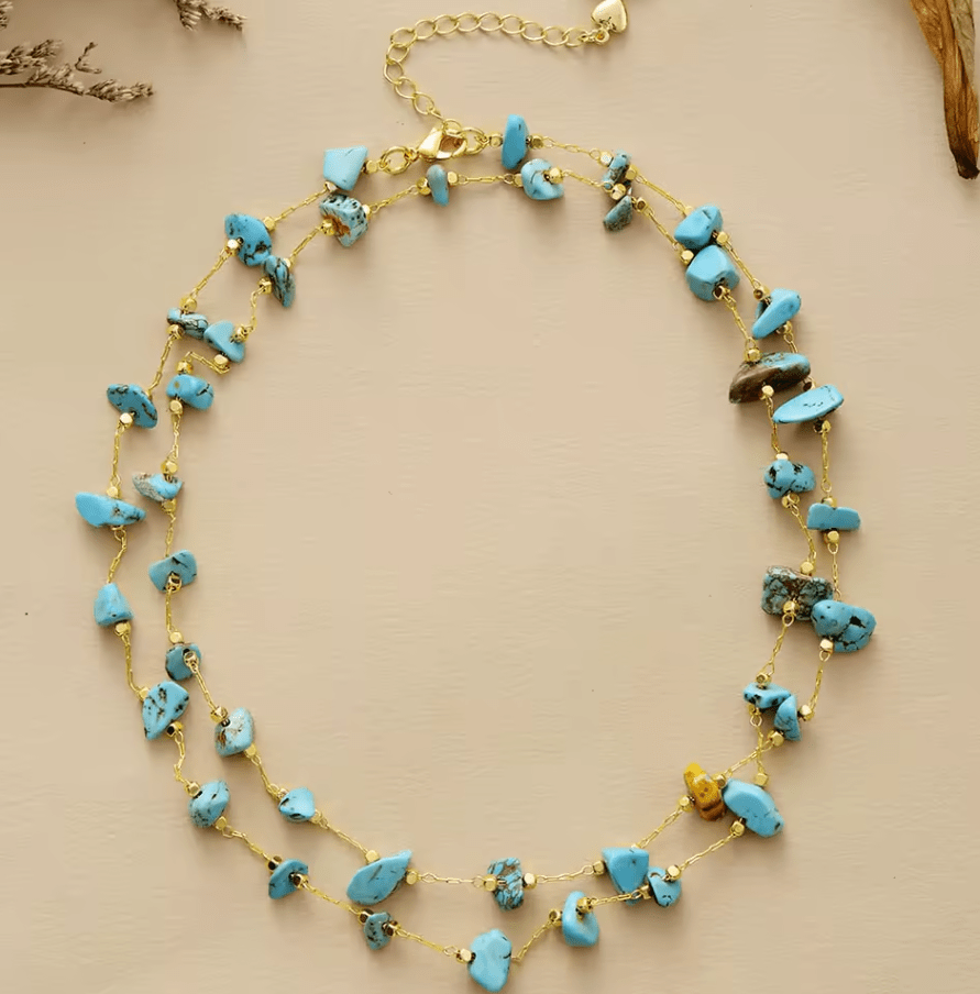 Laissez-vous séduire par l’élégance naturelle de ce collier en perles de turquoise véritables, Un bijou unique qui capture l’âme des plages ensoleillées et l’esprit bohème chic. 🌊🌸