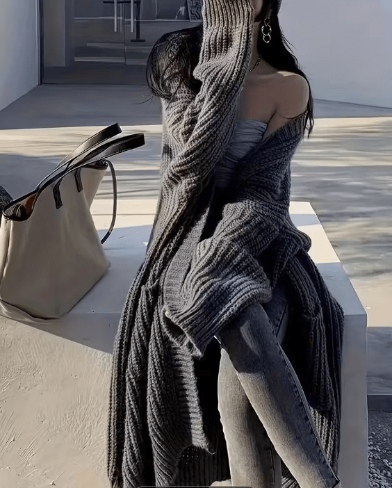 Cardigan Long en Maille Oversize – Confort & Élégance Casual